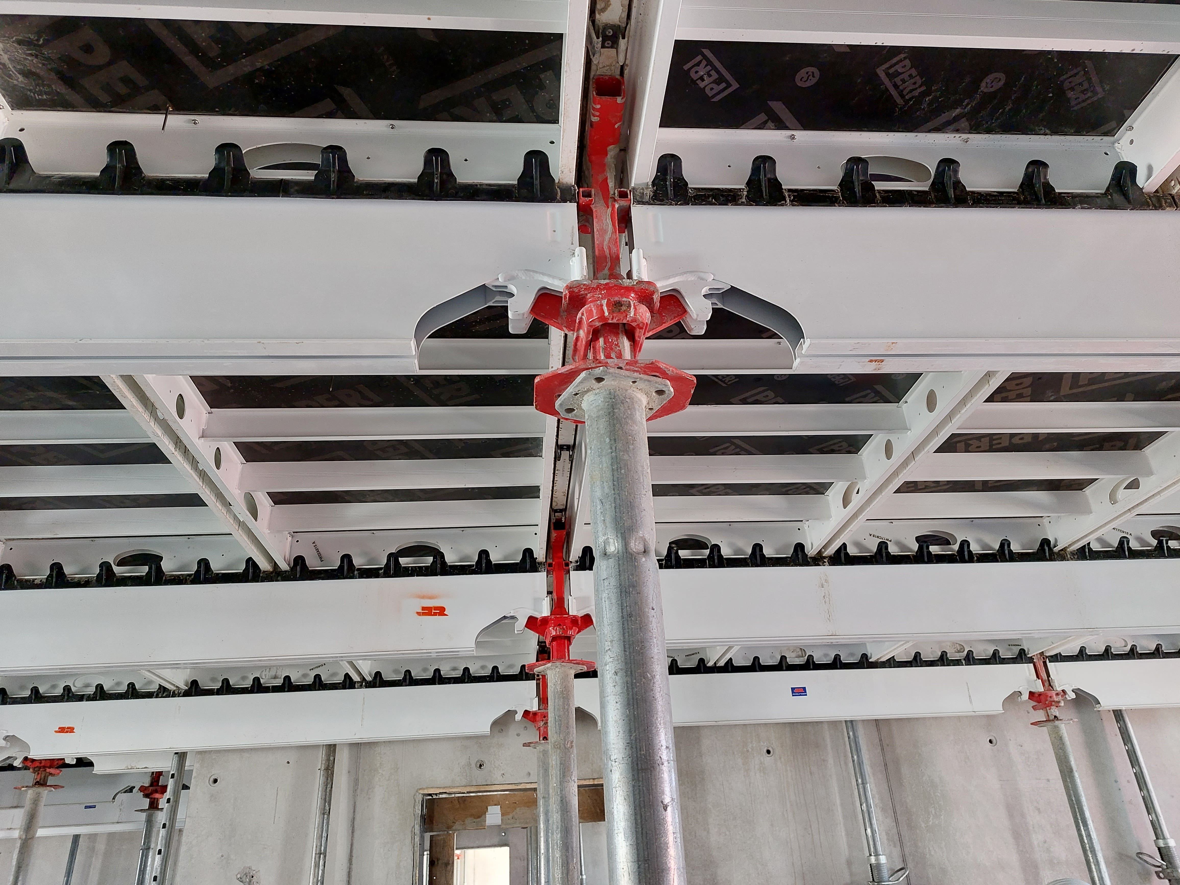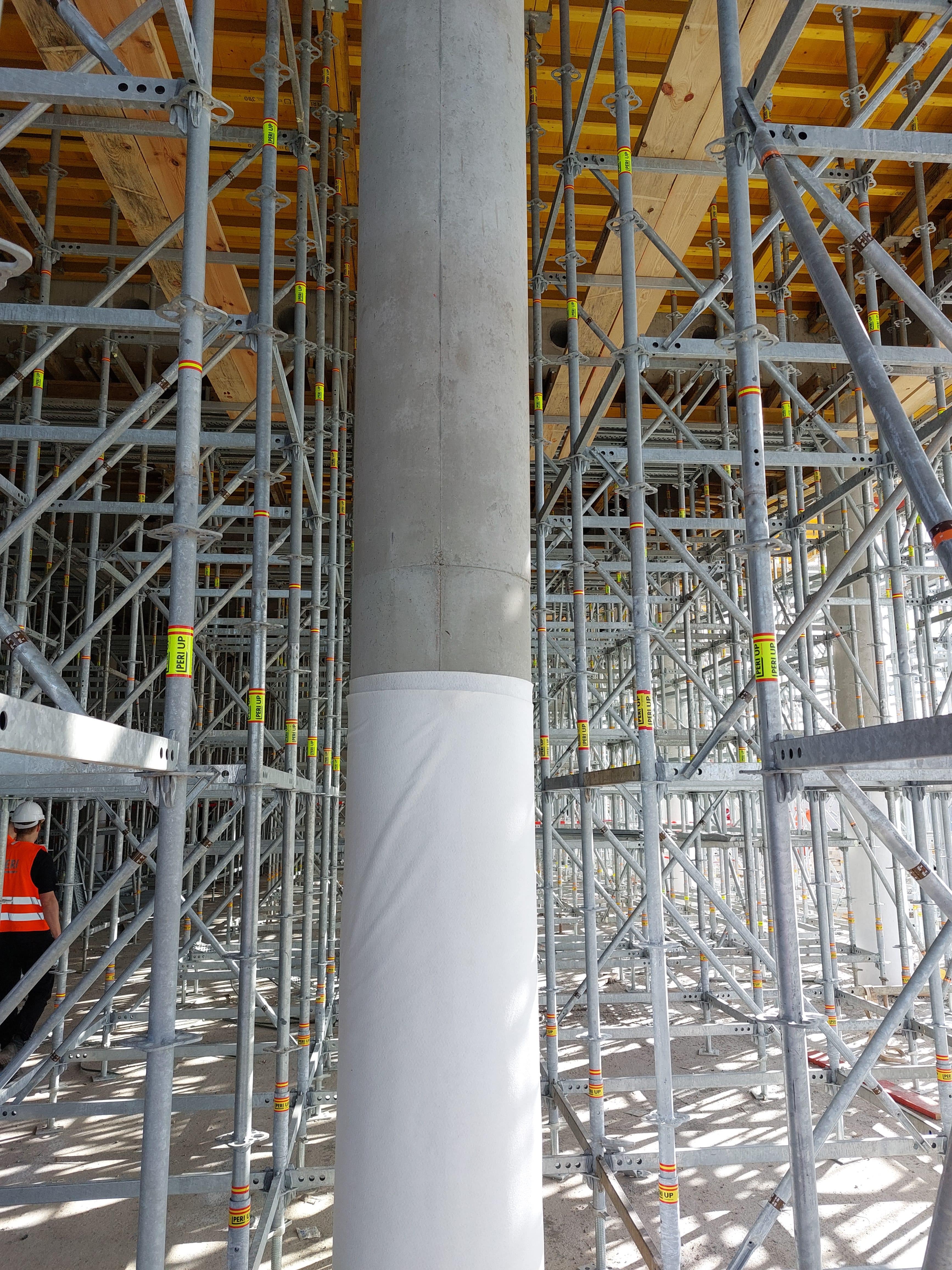 Toinen vierailukohteemme oli Münchenin alueella sijaitseva julkinen rakennuskohde, jossa oli laajasti esillä Perin muottikalustoa sekä pysty- että vaakarakenteissa. Kohteen paikallavalettu runko oli alimmassa kerroksessa tuettu pilarein ja yläkerroksissa runkona oli kantavat seinät. Pilarimuottien pintaa oli kehitetty niin että pilareiden valupinta oli virheetön mattapinta.
