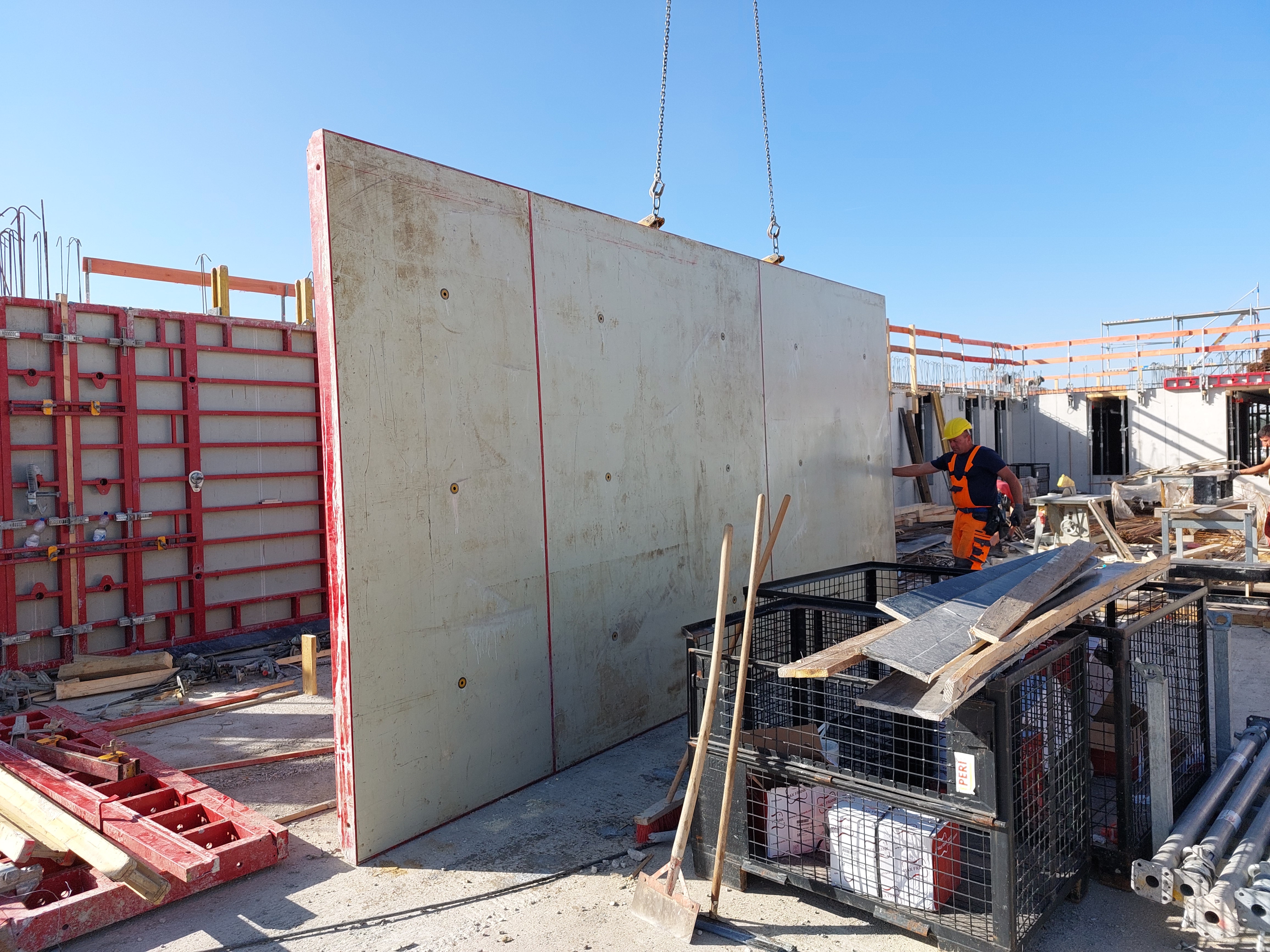Holvimuottina oli Saksassa yleisesti käytetty Skydec- muottikalusto. Betonoinnin jälkeen muottikalusto pestiin ruiskuttamalla, jolloin säästettiin merkittävästi muottien puhdistuskuluissa. Kantavien seinien muottipinnoissa vanerin päällä oli käytössä kalvo, jonka ansiosta valupinta oli erittäin siisti ja mattamainen. Seinien pinnan laatuun vaikuttaa oleellisesti myös vibraustyövaihe. Seinävalussa vibra lasketaan ennen valua seinän alaosaan ja valun edetessä sitä nostetaan hiljaa tasaisesti ylöspäin. Näin ilma poistuu rakenteesta ja seinään ei jää näkyviin valukerrostumia.
